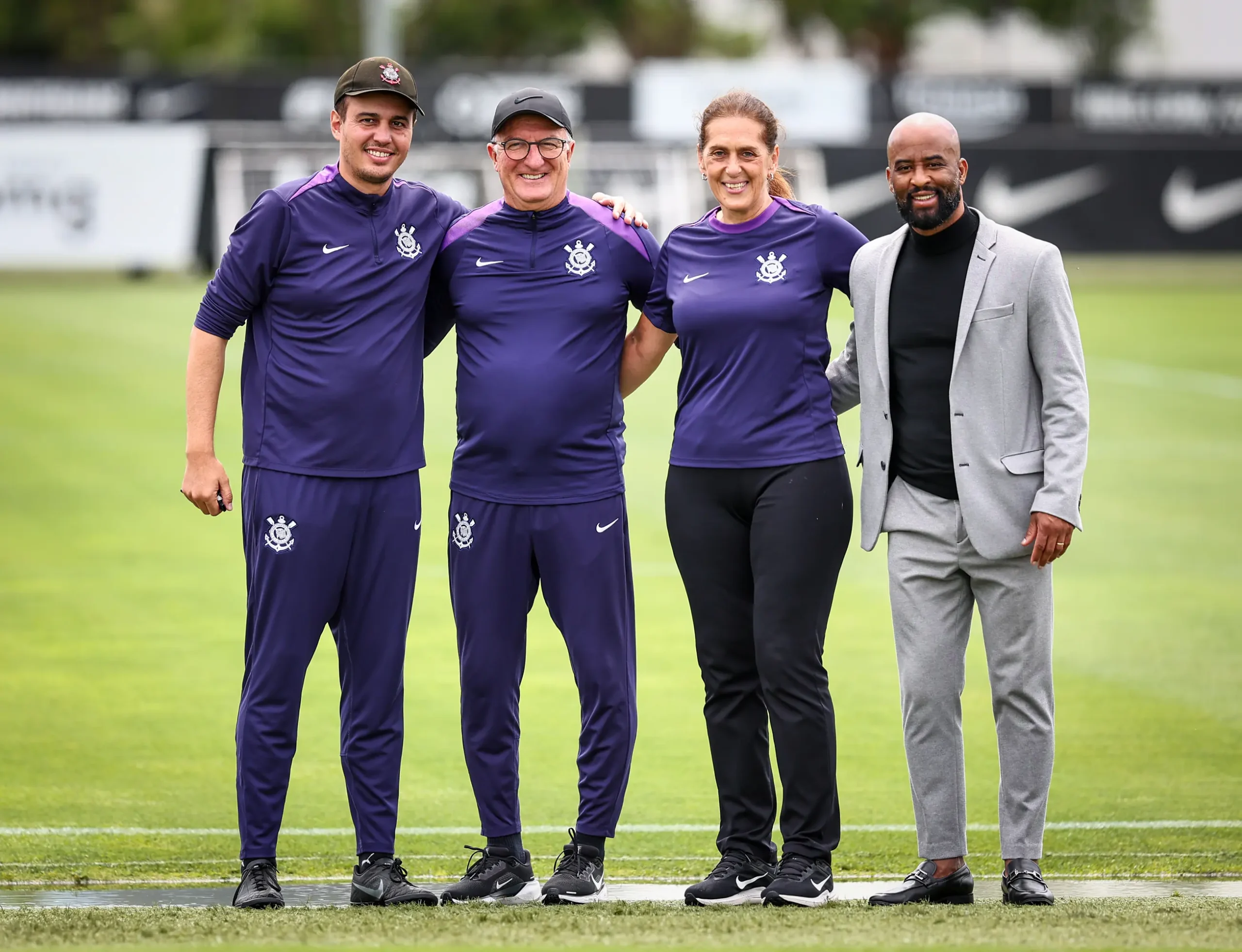A dupla assistiu à atividade ao lado de Iris Sesso, diretora de futebol feminino do Timão. Pouco depois, o treinador das Brabas, Lucas Piccinato, também cumprimentou os profissionais.