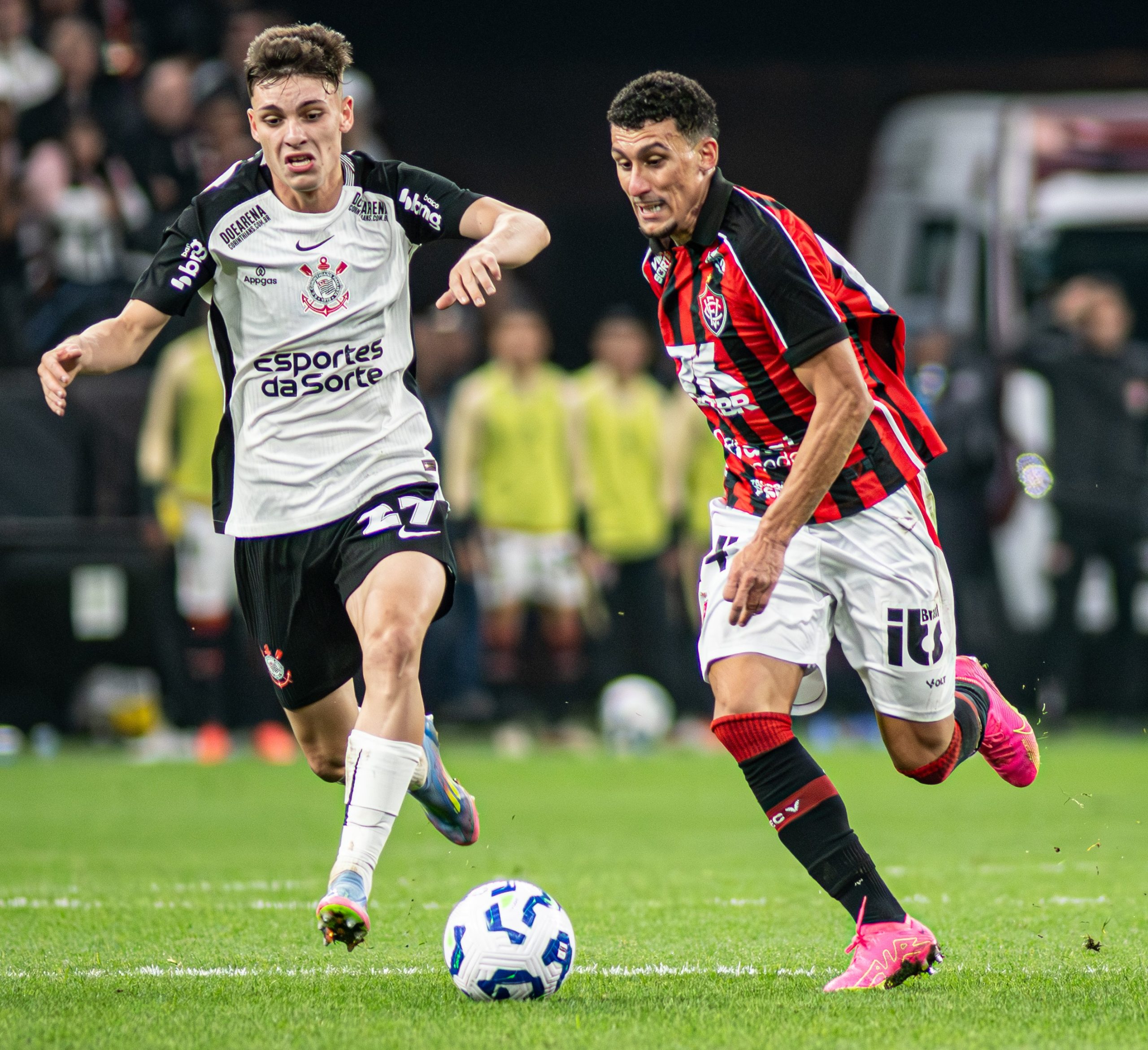 Vitória e Corinthians se enfrentam neste sábado, às 16h (de Brasília), no Barradão, em partida válida pela 30ª rodada do Campeonato Brasileiro. O confronto é considerado um duelo direto na luta contra o rebaixamento, dada a proximidade das equipes na tabela de classificação.